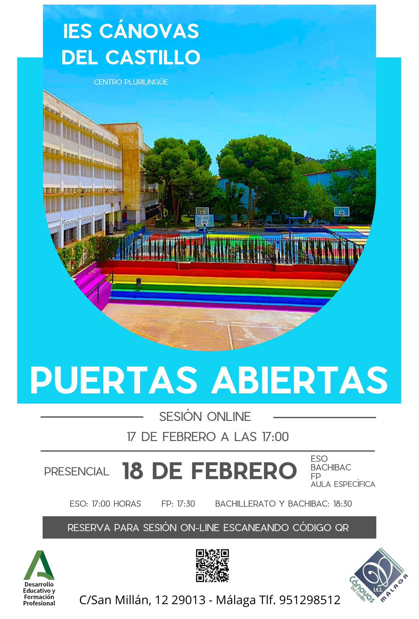 Nuestro instituto se sitúa en el barrio de El Ejido, en pleno centro de Málaga. Somos el único IES de la provincia con Bachibac (Bachillerato Francés). También ofertamos secundaria plurilingüe en francés/inglés, bachilleratos en todas las especialidades, ciclos formativos de Turismo e Informática, FP Básica de Alojamiento y Lavandería.